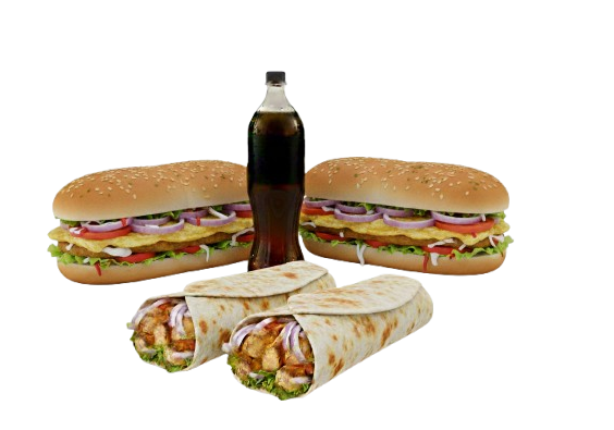 2 Chicken Paratha Rolls, 2 Anda Shami Burgers, 1.01L Drink